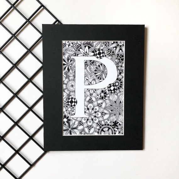 Letter P Bedroom Print Custom Name Art Typography Print Letter Print Kids Art Print Abc Letters Baby Nursery Decor Ideas Monochrome
