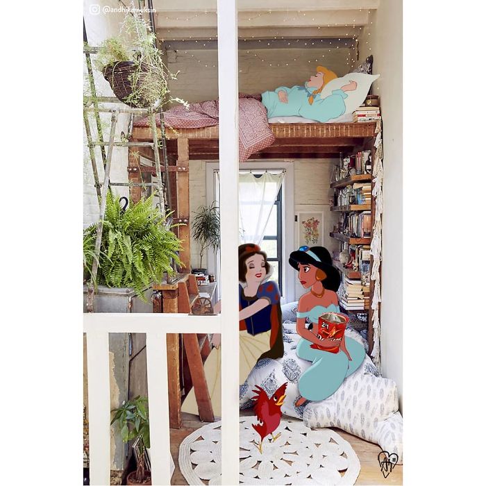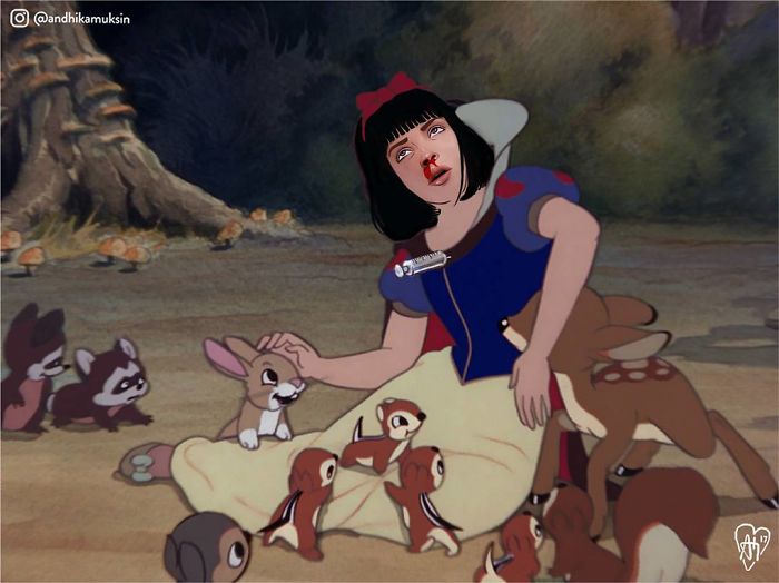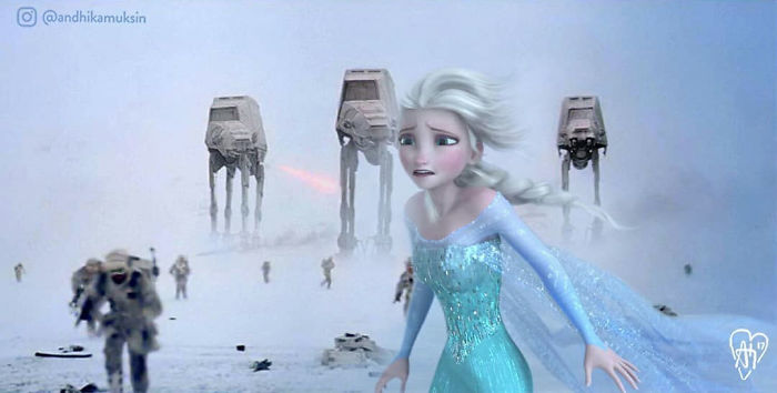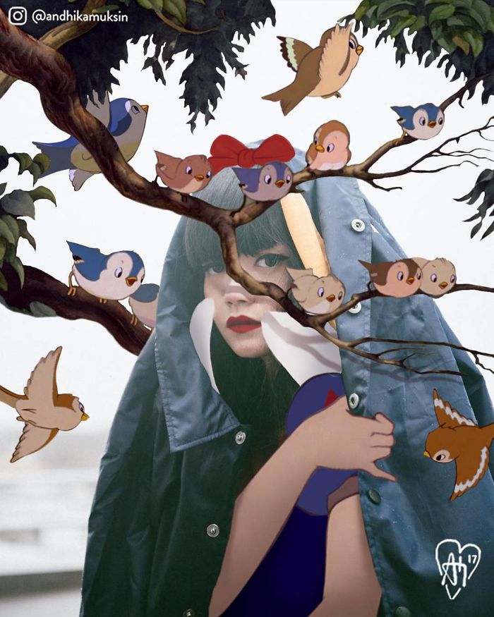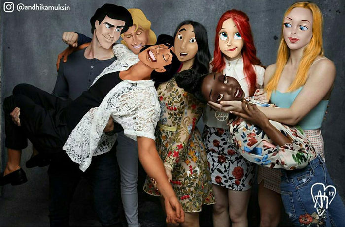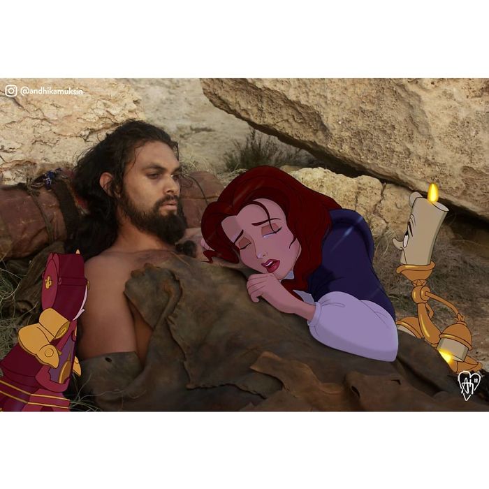 Andhika Muksin is a Jakarta-based artist who combines his two passions – illustration and Disney – into one. Using photoshop, Muksin creates an alternative universe where seeing Ariel hugging Kit Harington is… completely okay.