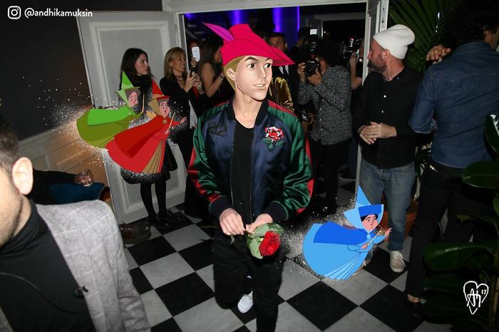 Muksin takes our beloved Disney characters and skilfully photoshops them into celebrity pictures, blending those real life situations with limitless imagination. Scroll down to witness them for yourself.