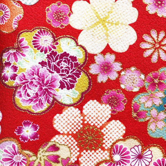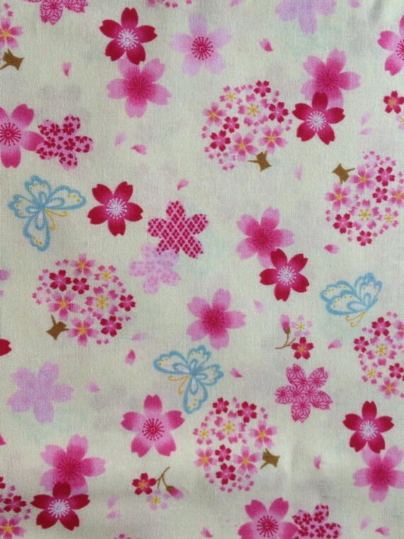 One Yard Kimono Design Fabric Sakura Flower Cherry Blossom Etsy
