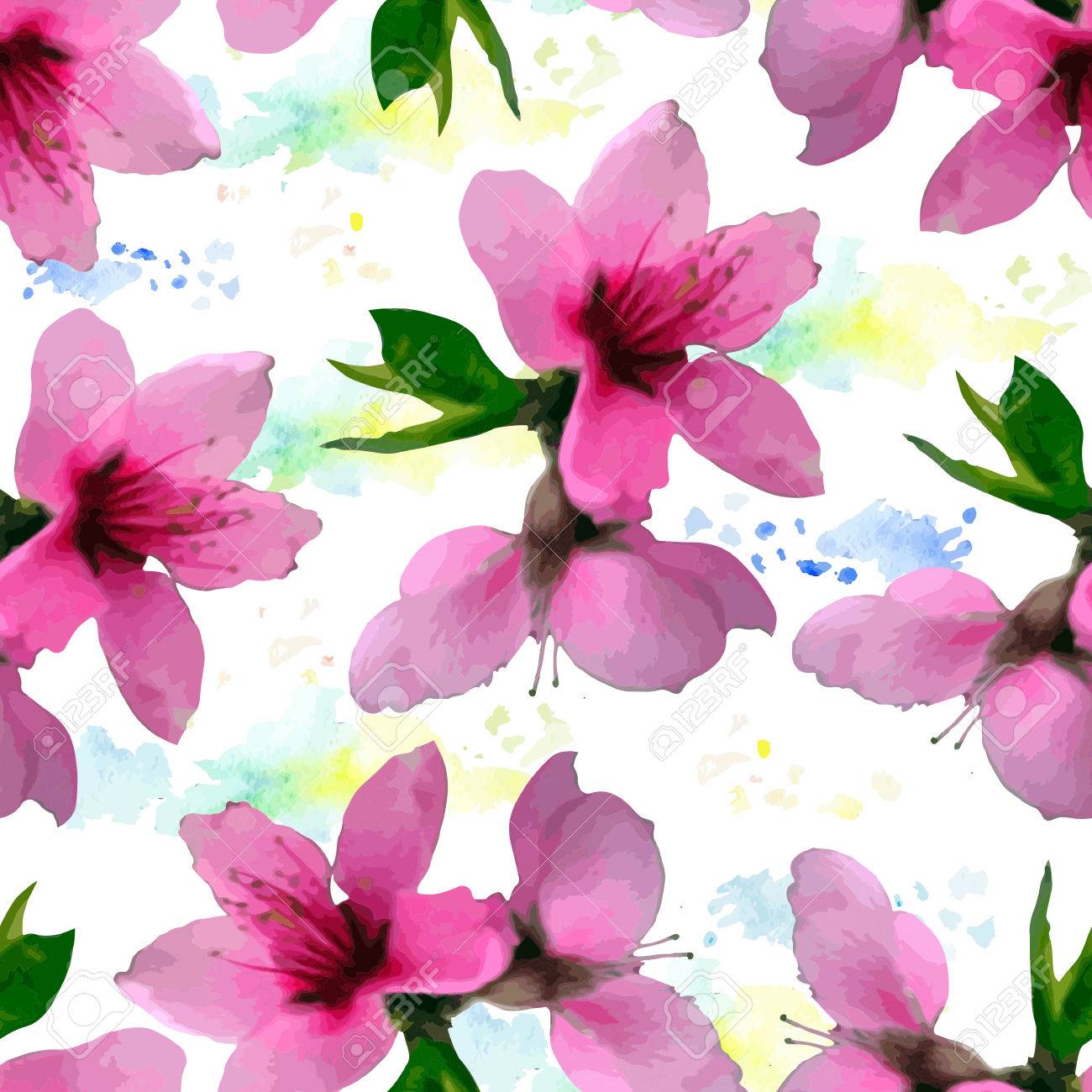 Seamless Pattern Of Hand Drawn Watercolor Cherry Blossom Delicate