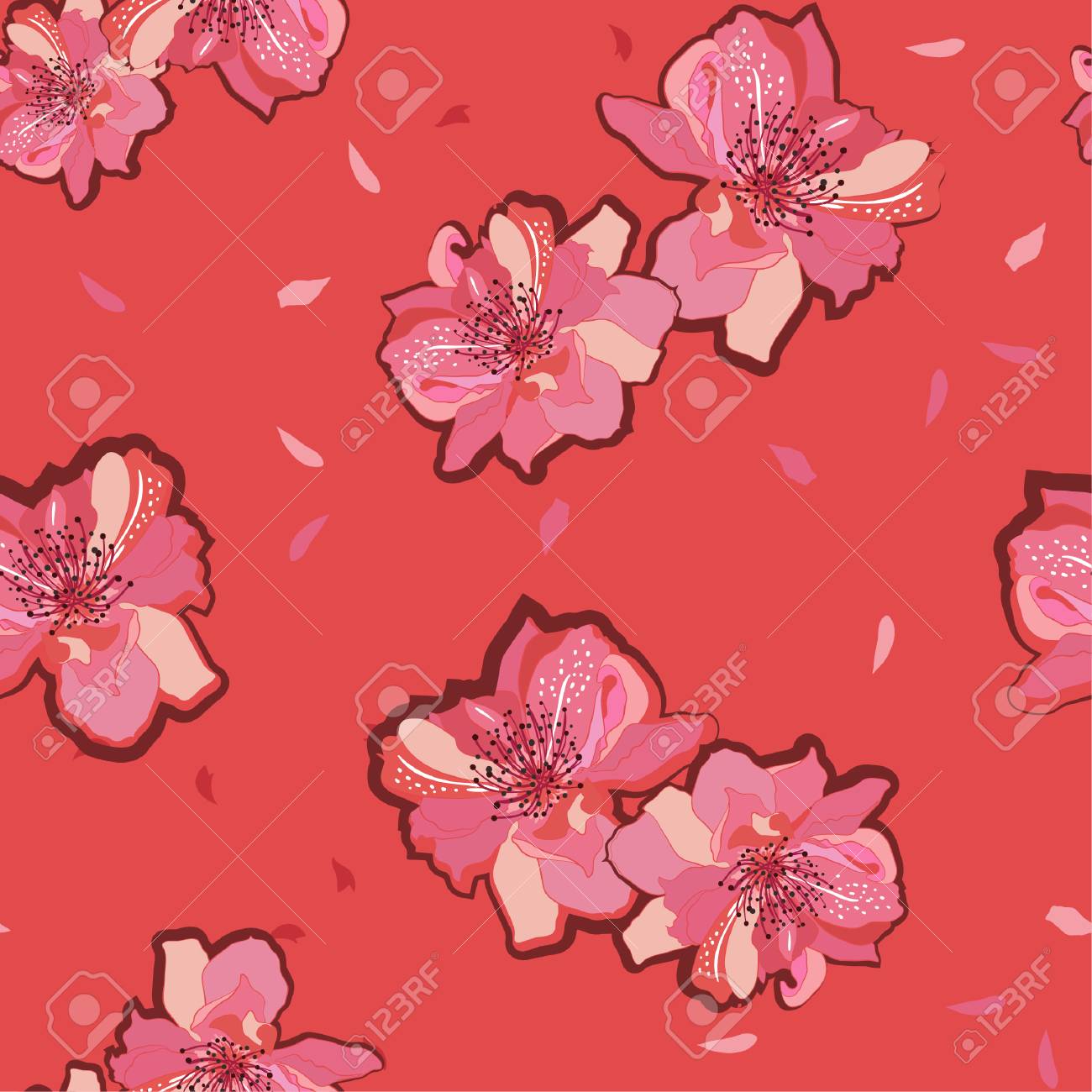 Vector Seamless Bright Cherry Blossom Pattern Floral Sakura