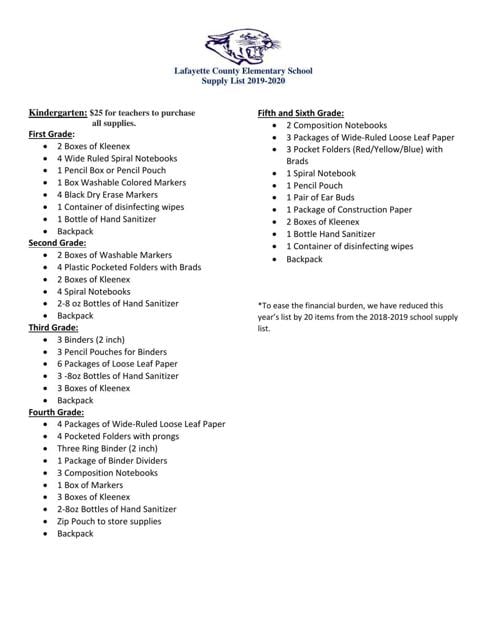 2018 2019 School Supply Lists Miscellaneous Eagle S Landing